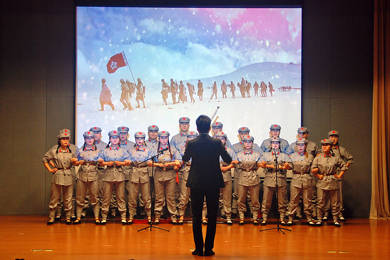 近兩個多小時10余個節(jié)目輪番上演,現(xiàn)場高潮迭起,精彩不斷。演員們以奮進(jìn)的姿態(tài)、飽滿的熱情通過演唱、舞蹈、朗誦及相聲等多樣化的形式帶領(lǐng)大家回顧了黨苦難輝煌的艱辛歷程、崛起騰飛的發(fā)展之路及偉大復(fù)興的歷史進(jìn)程,表達(dá)了對黨和祖國母親的熱愛,傳遞了堅定不移跟黨走的信念,凝聚起奮進(jìn)新時代、啟航新征程的精神動力。