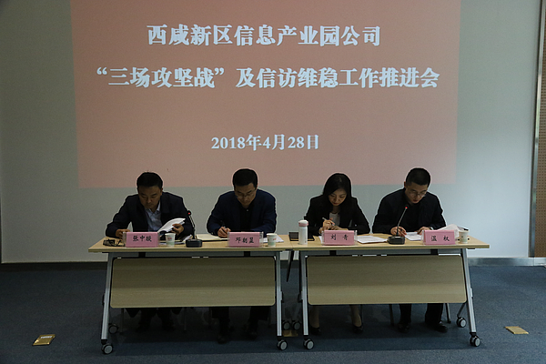 4月28日下午,信息產(chǎn)業(yè)園公司召開(kāi)“三場(chǎng)攻堅(jiān)戰(zhàn)”及信訪維穩(wěn)工作推進(jìn)會(huì)。公司全體干部員工參加會(huì)議。