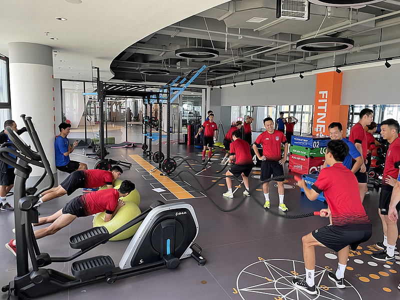 8月29日,在云谷二期健身房中,陜西長安聯合足球俱樂部的球員們正在緊鑼密鼓訓練備戰,準備迎接即將到來的2023中冠聯賽總決賽。