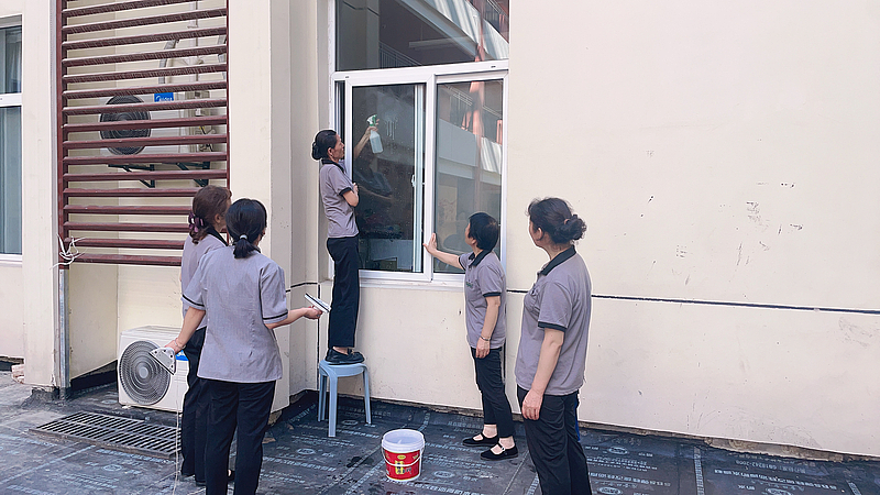 學(xué)校面積大、開學(xué)時(shí)間緊迫、衛(wèi)生死角多……重重困難給拓荒工作帶來了極大考驗(yàn),灃西服務(wù)工作人員不畏艱辛,發(fā)揚(yáng)團(tuán)隊(duì)作戰(zhàn)精神,從地面到墻體、桌椅到柜腳......繁忙而有序地清潔著校園的每一個(gè)角落,扎實(shí)做好新學(xué)期開學(xué)各項(xiàng)準(zhǔn)備工作。
