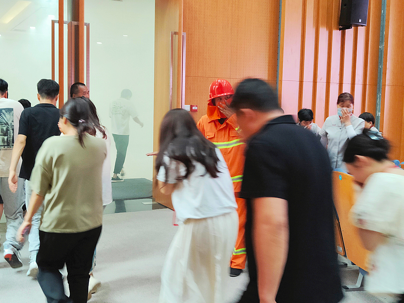 在疏散過(guò)程中,樓內(nèi)人員彎腰低姿,用毛巾捂住口鼻,緊張而有序地向安全地帶集結(jié)。整個(gè)演練過(guò)程組織嚴(yán)密、行動(dòng)迅速,充分展現(xiàn)了西部云谷園區(qū)應(yīng)急隊(duì)伍良好的應(yīng)急響應(yīng)能力和團(tuán)隊(duì)協(xié)作精神。