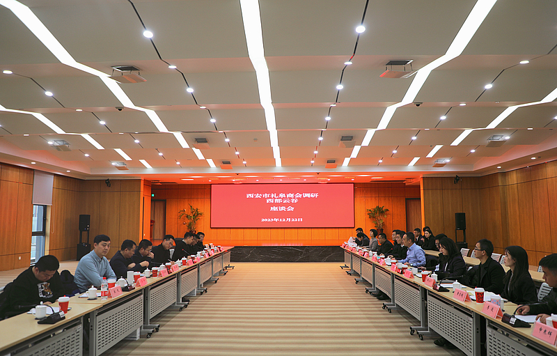 12月22日,西安市禮泉商會副會長解領權、秘書長任冬凌帶領西安市禮泉商會投資考察團一行13人參觀調研灃西新城西部云谷。