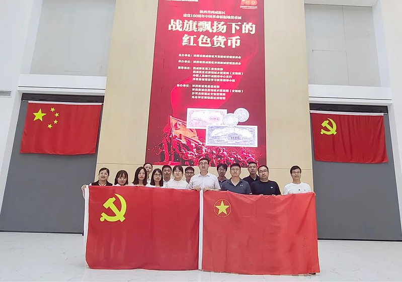 為進(jìn)一步傳承紅色基因,追溯紅色記憶,從經(jīng)濟(jì)金融領(lǐng)域感受黨領(lǐng)導(dǎo)全國(guó)人民艱苦奮斗的光輝歷程,推進(jìn)黨史學(xué)習(xí)教育走深走實(shí),6月29日至6月30日,灃西集團(tuán)組織黨員干部員工赴灃西新城規(guī)劃展覽館參觀“戰(zhàn)旗飄揚(yáng)下的紅色貨幣”主題展覽。集團(tuán)黨委書記、董事長(zhǎng)楊建柱,總經(jīng)理姜勤發(fā)和其他在家班子成員,全體中層干部參加。 同時(shí),部分黨支部積極組織本支部黨員參觀主題展覽。