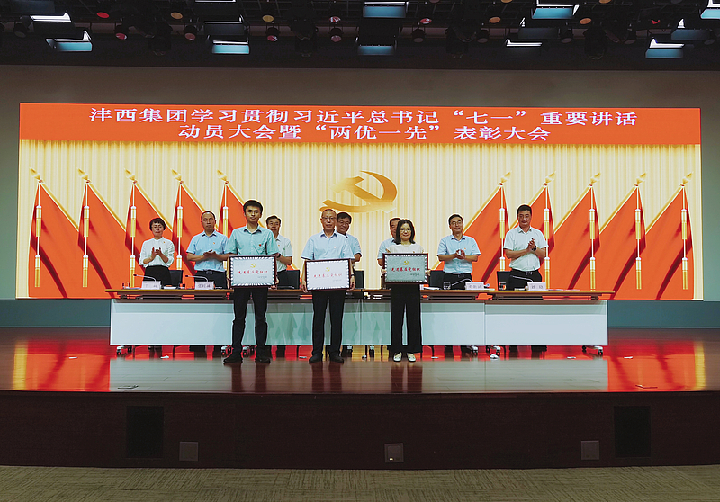 7月14日,灃西集團召開學習貫徹習近平總書記“七一”重要講話表彰“兩優一先”大會暨2021年上半年經營運行分析會。集團黨委書記、董事長楊建柱出席并講話,總經理姜勤發主持會議,其他在家班子成員出席。