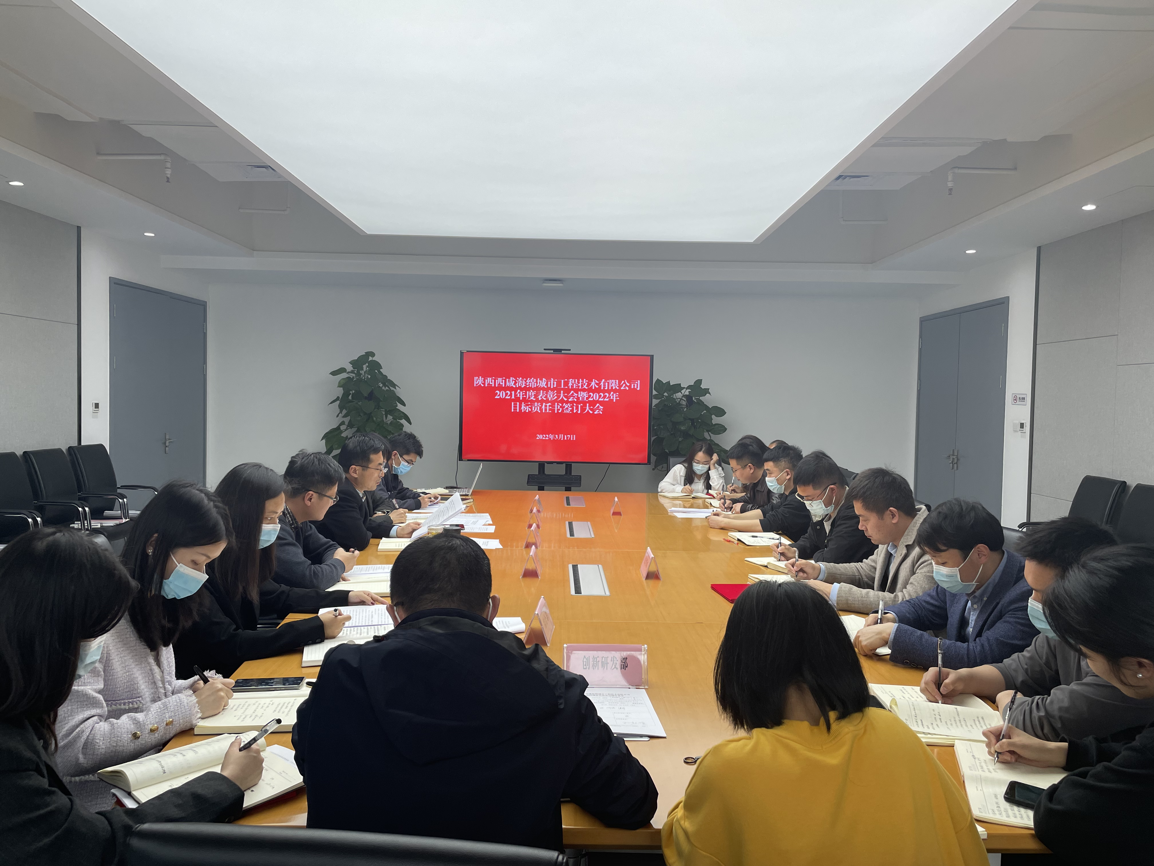 3月17日,灃西集團海綿城市技術公司召開2021年度表彰大會暨2022年目標責任書簽訂大會,集團副總經理、海綿城市技術公司董事長鄧朝顯出席會議并講話。會議通報了2021年度海綿城市技術公司經營業績考核結果及優秀員工名單,鄧朝顯為優秀員工頒獎。隨后,會議對2022年黨建、黨風廉政、意識形態等工作和2022年度重點任務進行了安排部署,并與各部...