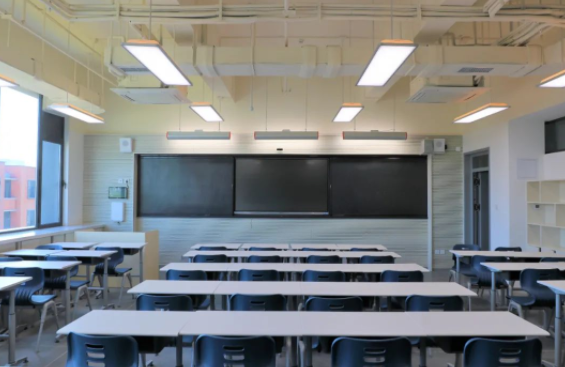 音效保障:為保證老師講課效果并避免聲音擴散,在前后墻面采用吸音板并內填吸音棉,以保證吸音效果。同時,教室安置聲麥設施,有效提升老師、學生音量,確保教學過程中老師與學生之間的有效溝通。